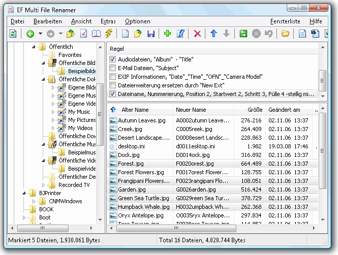 EF Multi File Renamer ist ein vielseitiges Werkzeug zum komfortablen Umbenennen einer Vielzahl von Dateien und Ordnern in einem Arbeitsgang. Gegenüber vergleichbaren Programmen hebt sich EF Multi File Renamer vor allem durch sein Konzept zur übersichtlichen Definition von Umbenennungsregeln ab.